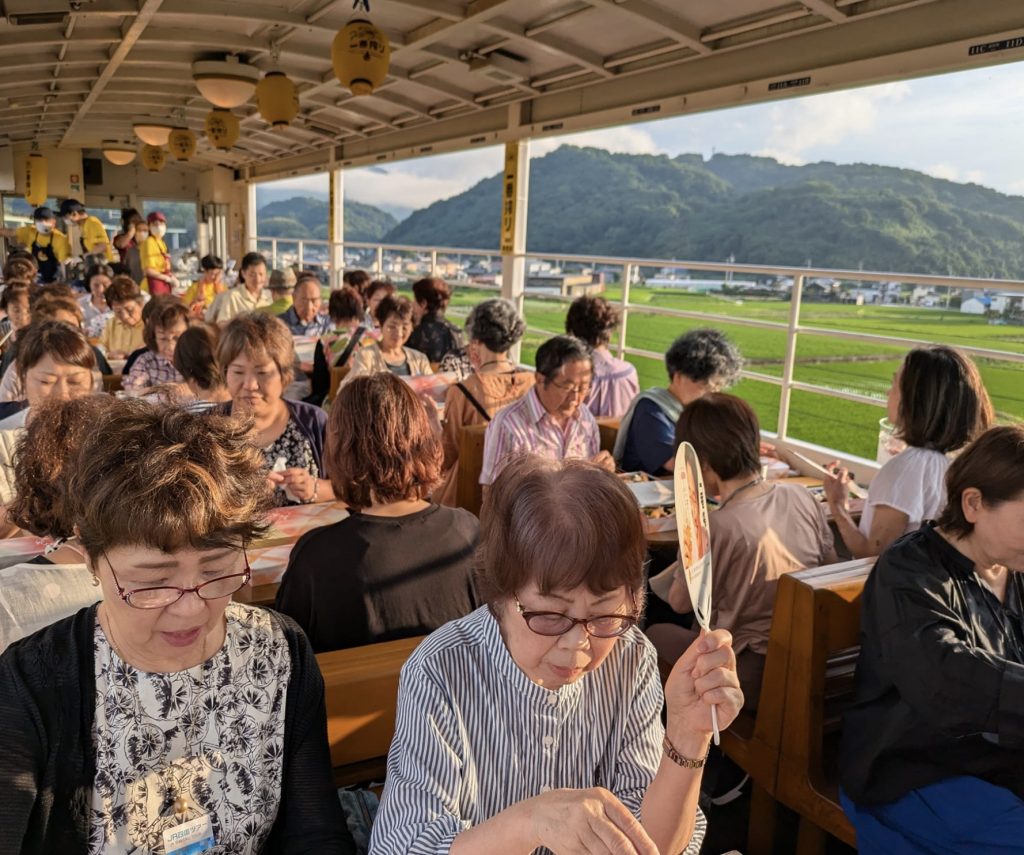 夕暮れに出発し、海に沈む夕日を見ながら乾杯! で、引き返す前に、夜の長浜の街をプチ散策。お弁当もいただきながら、めっちゃ楽しいひととき。今年から貸切ができなくなってきたので、来年できるかどうかは微妙ですね。